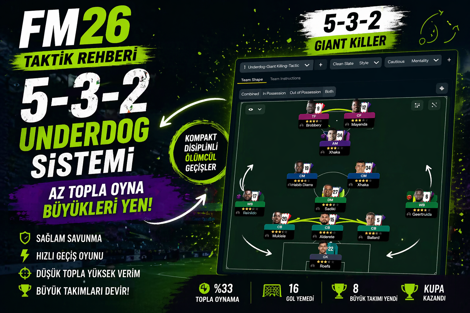 FM26 5-3-2 Taktik: Az Topla Büyük Takımları Nasıl Devirirsin?