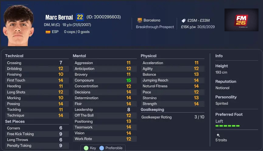 | 3 | Marc Bernal | 18 | Barcelona | 85 | £106M | Random | Düşük |