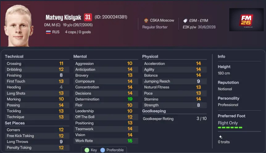 | 7 | Matvey Kislyak | 19 | CSKA Moscow | 83 | £25M | Random | Düşük |