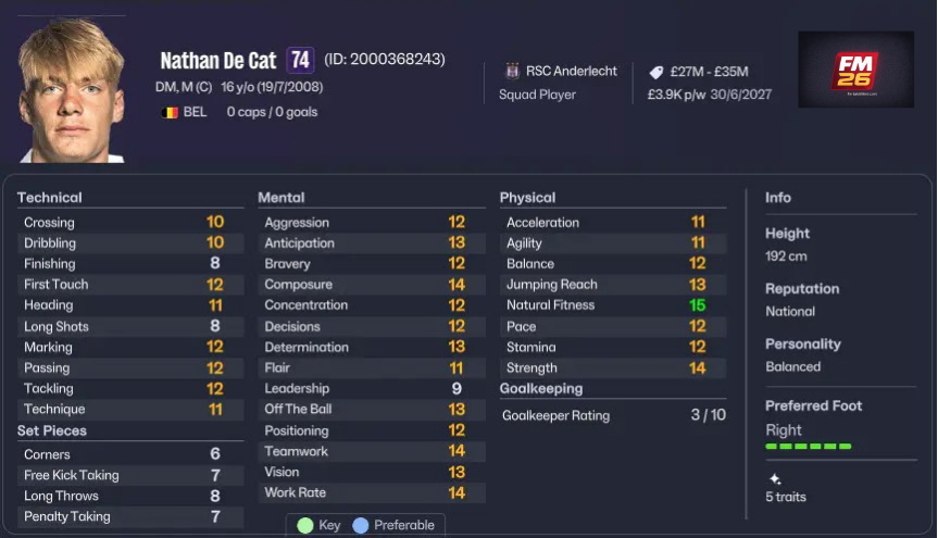 | 2 | Nathan De Cat | 16 | RSC Anderlecht | 87 | £125M | Random | Yüksek |