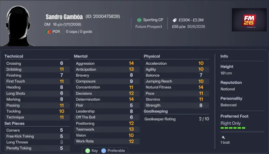 | 9 | Sandro Gambôa | 16 | Sporting CP | 80 | £6M | Random | Düşük |