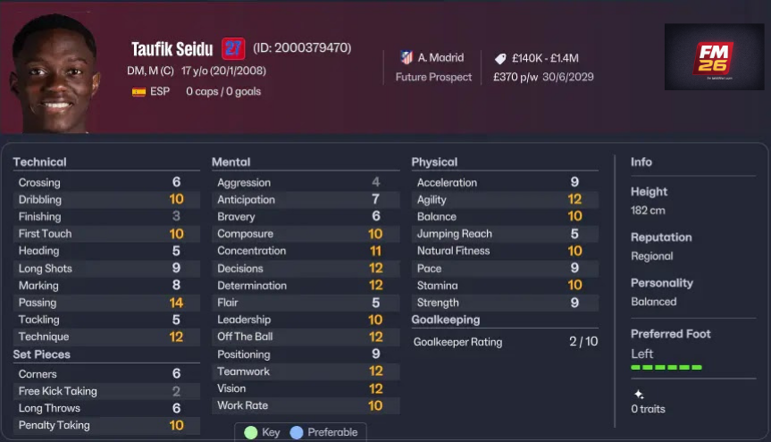 | 10 | Taufik Seidu | 17 | Atlético Madrid B | 82 | £3M | Random | Düşük |