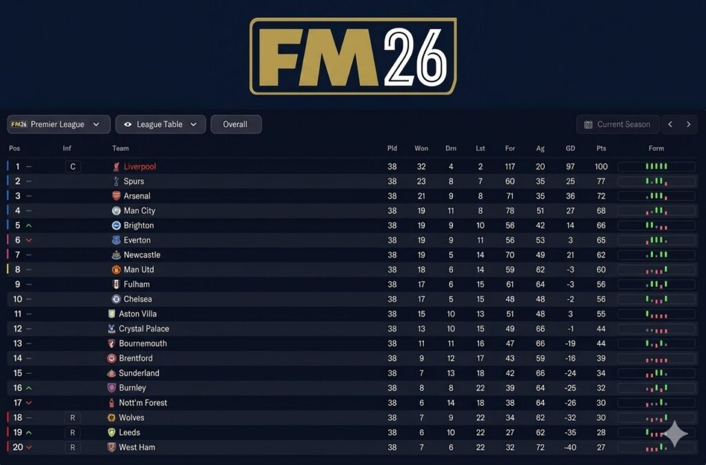 FM26 Klopp 4-3-3 Gegenpress Taktiği Premier Lig 100 Puan