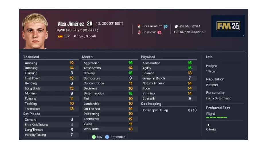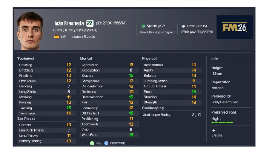 İspanyol futbolunun son yıllarda yetiştirdiği en heyecan verici sağ beklerden biri. Fresneda’yı Football Manager oyuncuları zaten birkaç sürümdür yakından tanıyor.
