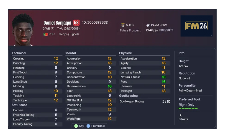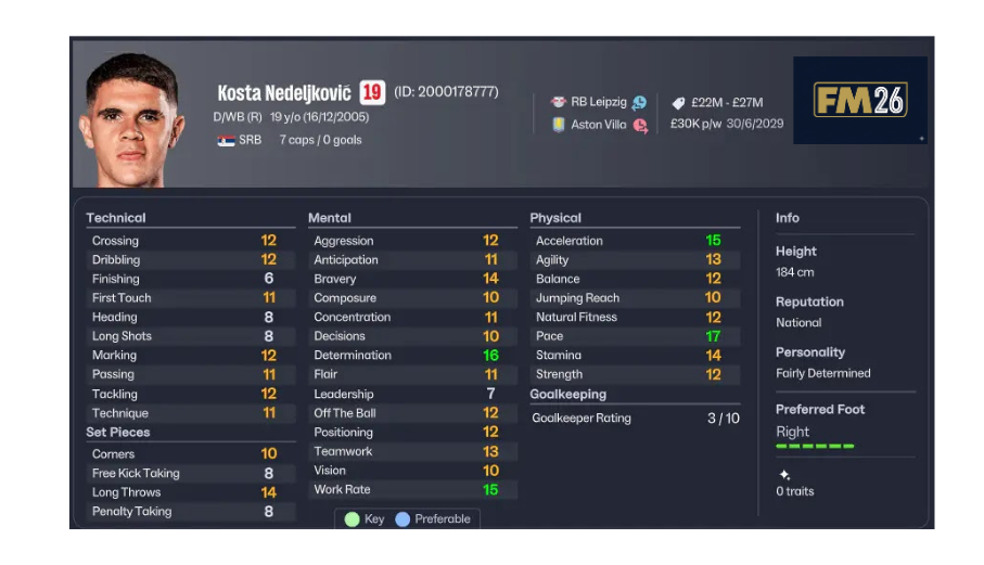 FM26’da wonderkid sağ bek seçerken yalnızca potansiyel yetenek (PA) değerine bakmak yeterli değildir. Şu özellikler özellikle önemlidir: