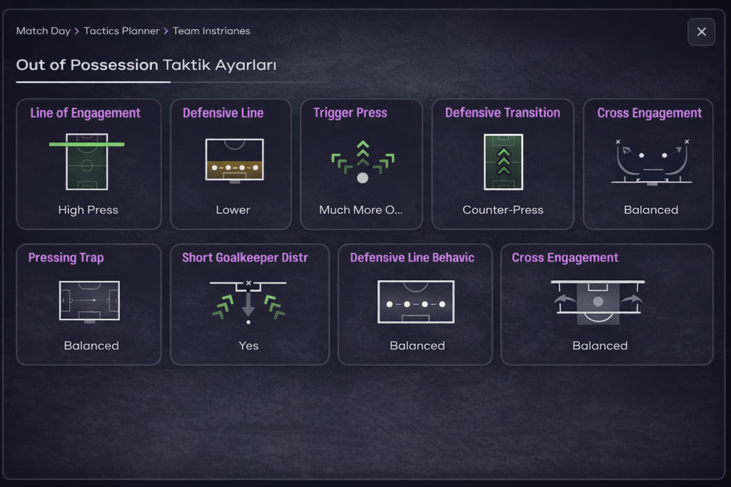 - Top kaybı sonrası anında geri kazanım (counter-press) hedeflenir